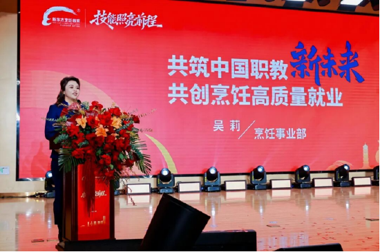 最后,中国东方教育集团烹饪第二事业部总经理吴莉重磅发布《新东方烹饪教育高质量就业蓝皮书》及“千企万岗优才计划”。该计划旨在系统保障学子高质量就业,为企业精准输送优质技能人才,是推动职业教育与产业需求深度对接的具体行动纲领。