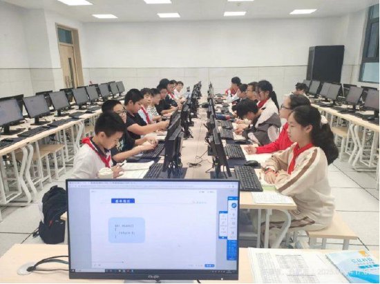 键盘起落间,创意渐成型。信息学课程(C++)以实操训练为核心,让同学们沉浸式投入代码实践。课堂上,大家紧盯屏幕、专注编程,桌面笔记与代码页面相互呼应,学练节奏紧凑高效;遇到难题时,围坐交流、碰撞思路,在集中攻坚中突破瓶颈。从基础语法入门到简单程序设计,同学们在指尖敲击与思维钻研中,锤炼逻辑思维与问题解决能力,感受编程世界的严谨与奇妙。