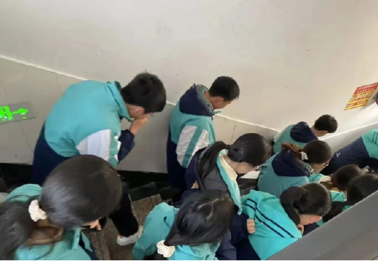 宣讲结束后,还组织进行了消防应急疏散演练。随着警报声响起,各班级按照预设方案,组织学生弯腰低姿、捂住口鼻,沿安全通道快速有序撤离至大操场指定区域,整个过程紧张有序、规范高效。消防救援大队指战员对演练情况进行专业点评,为后续优化应急处置流程提供了宝贵指导。
