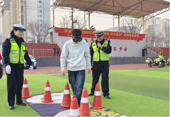 在操场分区开展的实操体验环节中,交通安全沉浸式体验与消防实操演练先后进行,成为教联体资源融合的亮点。交通民警通过模拟驾驶、模拟醉酒体验等互动形式,让师生直观感受交通安全的重要性;消防指战员现场演示灭火器使用、消防水带连接等实操技能,组织师生代表近距离体验,切实提升了应急处置能力。