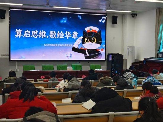 五年级化身“数学小侦探”,循着“黑猫警长抓小偷”的悬疑情境,开启小数计算的追凶之旅。初赛“密码桥”“线索门”层层筛选,复赛阶梯教室脑力角逐,小数加减乘除化作破案密钥,混合运算、实际应用成为追凶线索。小侦探们凝神审题、细心演算,于小数点的挪动间破解迷局,在数据的推演中锁定真相,让逻辑思维在沉浸式体验中拔节生长。