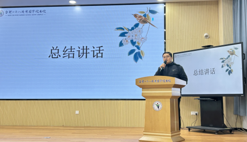 活动最后,合肥一六八玫瑰园学校南校校长助理管乃春作总结指导。他充分肯定了各位老师的分享,并围绕“科学复习与高效落实”提出核心建议:复习应引导学生主动建构知识体系,做到对标课标、研究命题、精准诊断,并善用时间、分层落实,让每位学生在复习阶段获得切实成长。他鼓励全体教师将研讨成果转化为教学实践,真正实现复习过程的育人价值。