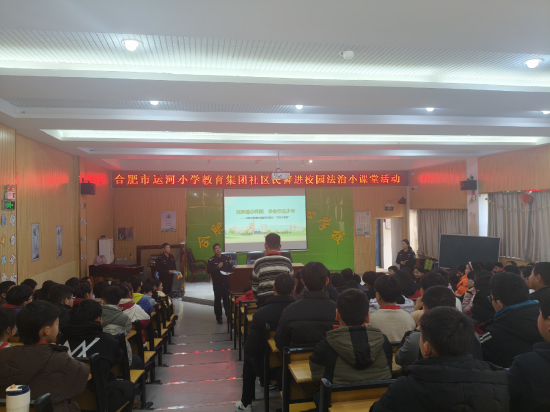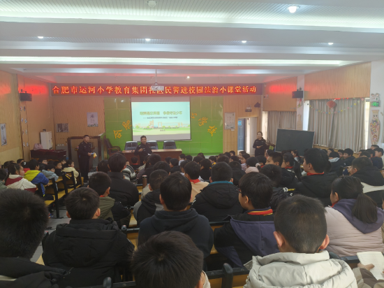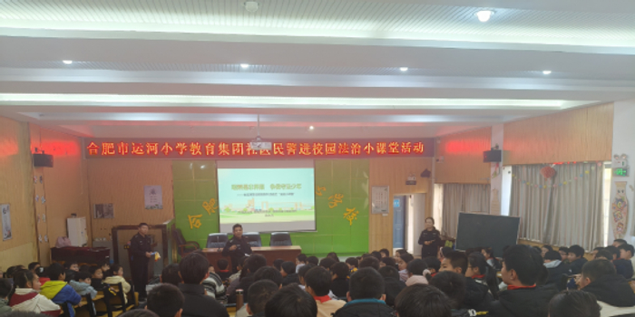 关注2026年1月14日下午,合肥市运河小学教育集团邀请蜀山区小庙镇派出所四级高级警长、国家三级心理咨询师徐永兵警官来校开展“社区民警进校园法治小课堂”活动。本次活动以“明辨是非界限,争做守法少年”为主题,结合真实案例与通俗讲解,引导学生厘清校规与法律边界,识别校园行为“雷区”。来自五、六年级的近150名学生代表参加听课活动。