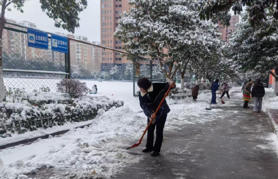 经过几个小时的努力,校园内外的积雪积冰全部清理完毕,所有通行路段都恢复了畅通。逍遥路小学闻雪而动、快速响应,用责任和担当为冬日校园筑牢安全防线,用劳动和付出温暖了寒冬。这场扫雪行动也给学生上了生动的一课,让“奉献、友爱、互助、进步”的志愿精神在校园里深深扎根。(马彬)