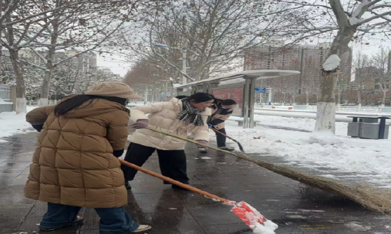 寒风凛冽,志愿者们没有丝毫迟疑,拿着工具很快就赶到各自负责的区域。有的弯腰挥锹,用力铲除路面的积雪;有的握着扫帚,仔细清扫散落的雪粒;还有的相互搭手,把清扫出来的积雪推到绿化带边缘。现场不时传来阵阵招呼声,忙碌的身影在白雪映衬下格外真切。