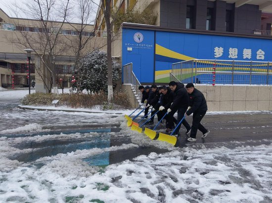 风雪映丹心 携手护学途——合肥一六八玫瑰园学校南校扫雪除冰暖心行动