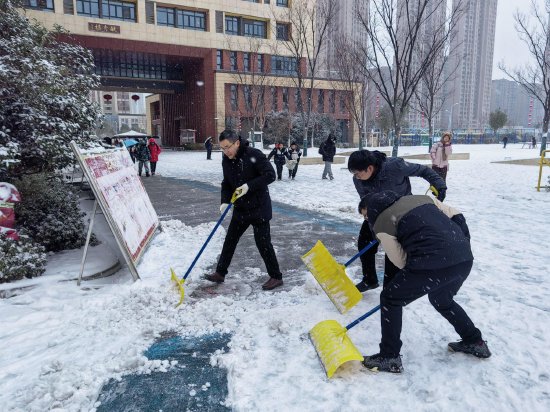 暖心的是,许多送孩子入校的家长见状,也自发加入除雪队伍。家长与教师们并肩协作,挥锹破冰,清扫通道。校园内外,忙碌的身影在皑皑白雪中构成了一道温暖的风景线。寒意虽浓,人心更暖,共同的努力迅速开辟出一条条干净通畅的“平安路”“温暖径”。