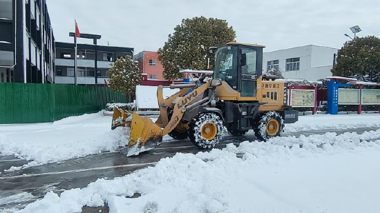与人工除雪的热火朝天不同,雪枫小学宿马东校区、雪枫小学宿马西校区、蒿沟小学、高滩小学等学校投入铲车除雪,使工作变得高效快捷。伴随着阵阵轰鸣声,铲车缓缓驶入校园,巨大的铲斗将厚厚的积雪轻松铲起,然后转运至指定的积雪堆放点。驾驶员师傅们凭借娴熟的技术,精准操控着铲车,在校园主干道上来回穿梭,所到之处,积雪纷纷被清理干净。对于铲车无法到达的角落,教职工们则手持工具进行精细化清理,形成了“机械作业为主、人工清理为辅”的高效除雪模式。高滩小学校长沈勇感慨道:“科技的力量真是强大,以往需要一整天才能完成的除雪任务,现在半天就搞定了,为师生们的安全出行争取了宝贵时间。”