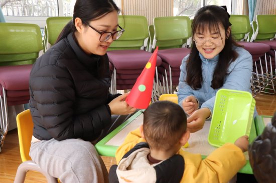 “嘿,小手!我们拍拍小手~嘿,膝盖!我们拍拍膝盖~”《小手小脚》的欢快旋律响起,孩子们跟着老师一起拍手、跺脚、扭腰,逐一拍打身体部位,在蹦跳中活动肢体,满是童真活力。紧接着,《小星星》轻柔流淌,孩子们手持小乐器,跟着节奏敲击摇晃,感受旋律快慢与节拍轻重的独特魅力,清脆乐声与哼唱声交织成趣。随后,手指游戏《捏拢放开》无缝衔接,“捏拢放开,小手拍一拍~”孩子们跟着口诀握拳、舒掌,配合拍手、转腕动作,小手指灵活翻飞。热身结束后,最受期待的手工《新年小帽子》环节,家长与孩子默契配合,裁剪、拼贴、装饰,一顶顶色彩鲜艳、充满创意的小帽子完成啦。宝贝们戴着自己小帽子互相“炫耀”,小脸上满是藏不住的欢喜。