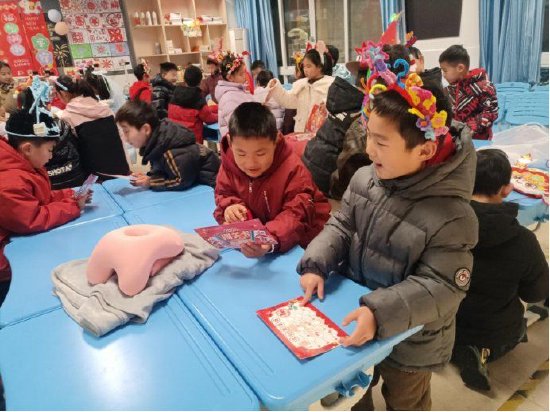 美育熏陶关的“玫瑰创美・骏马非遗”环节尽显匠心。孩子们充分发挥想象力与创造力,手持剪刀剪出造型别致的窗花,随后细心地将作品平整粘贴在A4纸上,反复调整布局、优化构图,让每一幅作品都尽显传统剪纸的对称之美、线条之韵,在动手实践中感受非遗文化的独特魅力。