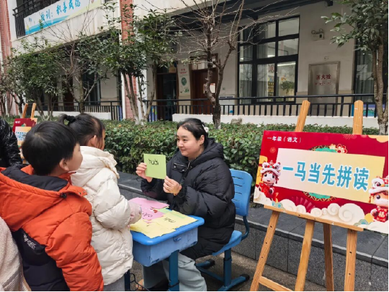 一马当先拼读:孩子们自信开口,准确拼读拼音音节,清脆的童声里,是扎实的拼音功底;马不停蹄识字:面对生字卡片,小勇士们快速认读,展现积累成果;快马加鞭朗诵:孩子们声情并茂地朗诵课文,抑扬顿挫的语调、生动的表情,将文字的韵律美展现得淋漓尽致。