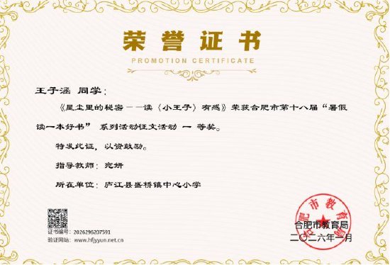 关注1月29日,由合肥市教育局举办的中小学第十八届“暑假读一本好书”读书征文活动落下帷幕,从合肥教育云平台征文结果来看,庐江县盛桥镇中心学校378篇学生读书征文获奖,再次在活动中创佳绩。