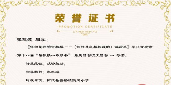 庐江县盛桥镇中心学校暑假读一本好书征文取得新突破