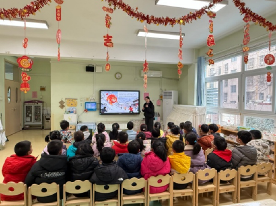 “很久很久以前,有一只叫‘年’的怪兽……”随着故事情节的展开,孩子们睁大了好奇的眼睛,完全沉浸在古老传说的神秘氛围中。郝国宸妈妈用生动的语言和丰富的表情,将“年”兽怕红色、怕火光、怕响声的特点描绘得栩栩如生,孩子们时而紧张地握紧小手,时而因“年”兽被赶跑而欢呼雀跃。