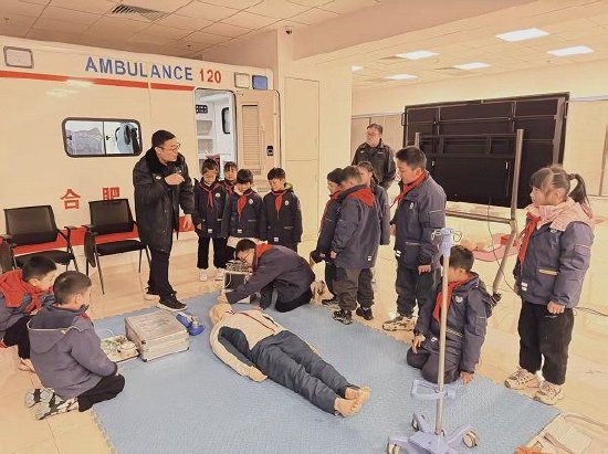 为普及急救知识,增强少先队员安全防护意识与自我保护能力,1月29日,合肥市六安路小学中铁国际城校区二(9)班向阳中队的少先队员们走进合肥市急救中心,开展了一场主题研学活动。沉浸式的学习体验与实操实践相融合,让孩子们在趣味中解锁急救技能,在探索中树立安全理念。