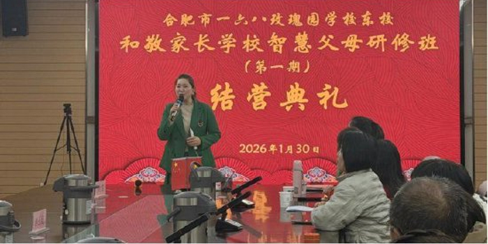 关注2026年1月30日晚7时,窗外冬雨淅沥、寒意渐起,合肥一六八玫瑰园学校东校的会议室里内却灯火温馨、座无虚席。“和敬家长学院”邀请万物生慈善基金会池正纪家庭教育导师团开展“智慧父母研修班”系列课程,以小班化、系列化、公益化为特色,为家长连续开展八期系统课程,聚焦家庭教育痛点,赋能父母成长。此次研修班的结业典礼在此隆重举行,学校副校长吴燕青、张红兵,政教处主任江贻宁、公益团队的导师们和本期研修班的全体家长参加了此次结营仪式。