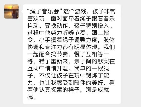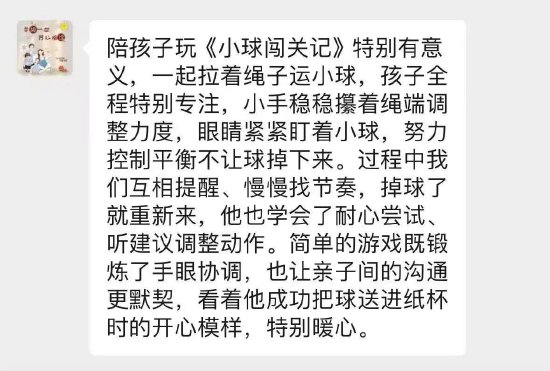 家长感悟:亲子游戏的美好从不止于游戏本身,更镌刻在亲子相伴的温暖时光里。接下来,就让我们一同感受家长们的真切分享,感受游戏中藏着的陪伴暖意、成长喜悦与幸福瞬间吧~