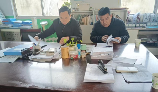 检查组在查看校园安全材料