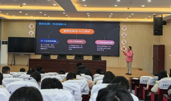 接着参加县级培训的王惟蕊、刘静、李丽、孙欢欢老师分别结合道德与法治、数学、英语、语文学科,以“人工智能赋能教学”为核心,从理论背景到实践应用,全方位解锁AI与教学的融合密码。结合备课设计、课堂互动、分层作业等一线教学场景,生动讲解了AI工具的实用技巧,让抽象的技术知识变得易懂易学。借助智能技术打破学科壁垒,实现学科融合教学,有效激发学生学习兴趣、提升综合素养,为学科教学创新提供新思路。围绕“基于人工智能课堂下培养学生数字素养的实践研究”,分享利用智慧课堂工具,提升学生信息获取、分析及应用能力的实践经验与丰硕成果,为教师们提供了可复制、可推广的操作范例。