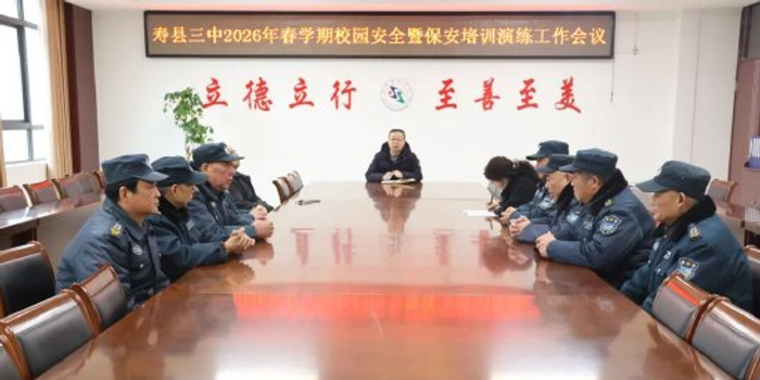 关注为全面筑牢校园安全防线,压实安保岗位责任,提升应急处置能力,2月27日上午,寿县三中召开2026年春学期校园安全暨保安培训演练工作会议。校领导、校安办成员、全体安保人员参会。