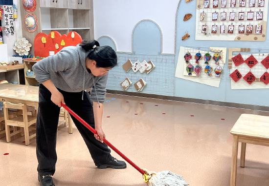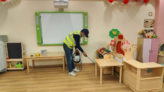 重点对教室、午睡室、走廊、楼梯、卫生间、玩具柜等幼儿高频接触区域进行深度清洁与消毒,同时对食堂、储物间等重点场所进行专项消杀,有效阻断病菌传播途径,为幼儿健康成长保驾护航。
