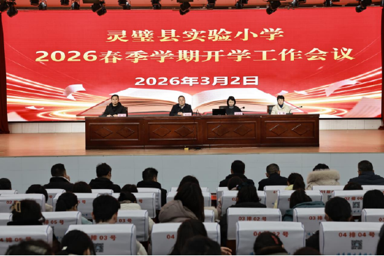 关注春启新程,万象更新。为统筹部署新学期各项工作,明确发展目标,凝聚育人合力,3月2日,宿州市灵璧县实验小学2026年春季学期开学工作会议顺利召开。学校党支部书记、校长曹纯红主持会议并作总结讲话,副校长张晓渠、盛永分别部署相关工作,教导处主任崔艳总结上学期教学工作,全体教职工参加会议。