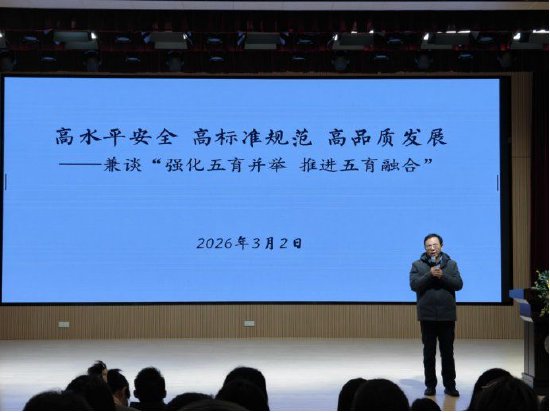 执行校长鲁柏松围绕党风廉政和师德师风建设发表讲话。他带领全体教职工深入学习“十五五”教育规划及2026年全国教育工作会议精神,要求全面把握教育的“三大属性”,聚焦教育强国“六大特质”,构建“八大体系”。他强调,要坚持党对教育事业的全面领导,坚持统筹发展与安全,营造风清气正的政治生态和育人环境,为学校高质量发展提供坚强政治保障。