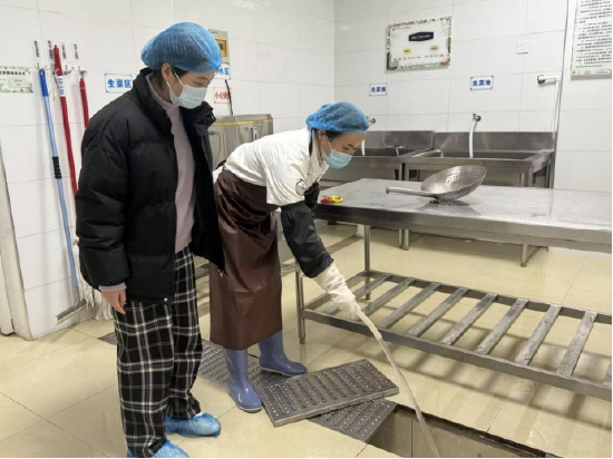 食堂安全排查聚焦卫生环境与设施安全,重点检查操作间卫生、厨具设备规范使用,仔细核查各类电器运行状态、食材储存规范,同时对食堂排水系统、下水道通畅情况进行全面检查,严格落实食材采购、餐具消毒、调味品保质期等关键环节管理,严把食品安全关,守护师幼“舌尖上的安全”。