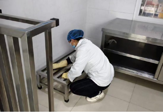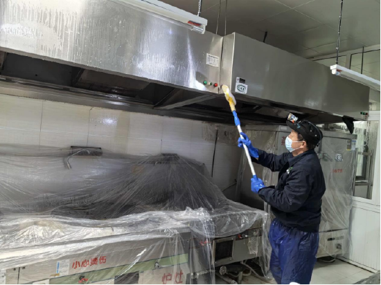 民以食为天,食以安为先。此次消杀行动中,厨房油烟管道清理成为重点工作之一。各园食堂工作人员联合专业维保团队,对厨房油烟管道、油烟机机身、滤网等进行全方位拆解清理。工作人员不畏油污,采用专业工具清除管道内堆积的油垢、杂物,对老化部件及时更换,彻底消除油烟管道消防安全隐患。同时,食堂内的灶台、操作台、厨具餐具也进行了深度清洗和高温消毒,从硬件设施到卫生细节,全方位筑牢校园食品安全防线。