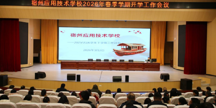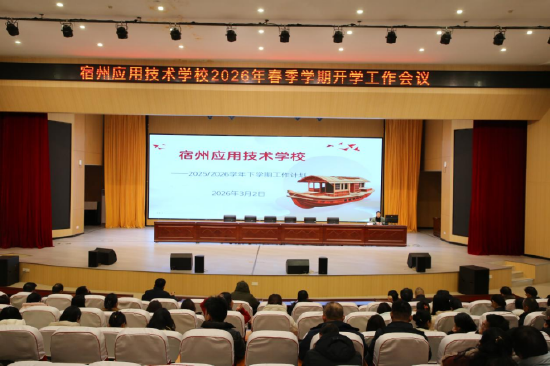关注金鞍启岁,万象更新。3月2日下午,宿州应用技术学校召开 2026 年春季学期开学工作会议,两百余名教职工齐聚学校学术报告厅参加会议。