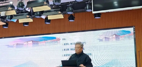 校长胡志杰作总结讲话。他首先传达市、区教体系统工作会议精神,围绕督导进校园、校园安全、师德师风建设、生活垃圾分类、规范办学行为等重点工作,明确上级部门工作部署与具体要求。全体教师要不忘初心、砥砺前行,准确把握教育发展新形势,主动识变、应变、求变,顺势而为、担当作为。并对全体教师提出“三要”工作要求:一要主动适应教育改革发展新形势,聚焦课堂主阵地,精研备课、提质增效,积极运用人工智能赋能教育教学,不断提升育人质量;二要牢固树立“健康第一”理念,坚持立德树人根本任务,着眼学生全面发展与长远成长;三要用心用情关爱每一位学生,尤其关注特殊学生群体,坚持因材施教、适度引导,不搞过高要求、不施过严管理、不有过激行为,真正做到攻心为上、以心育人,从心灵融化走向深度融合,凝聚家校协同育人强大合力。