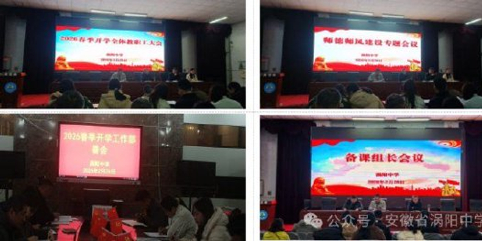 关注春启新程,笃行致远。为锚定新学期教育教学发展目标,夯实教师专业素养,凝聚全校育人合力,涡阳中学以 “凝心聚力跃马奔腾,春水细润开新局” 为主题,于 2026 年 2 月 28 日至 3 月 2 日开展为期三天的春季开学教师校本培训。培训分三阶段层层推进,涵盖工作部署、技术赋能、经验传承、集体研备、质量分析五大维度,全体教师以饱满热情投入学习研讨,在思想碰撞中凝聚共识,在专业赋能中锤炼本领,为新学期教育教学高质量开展蓄足动能、筑牢根基。