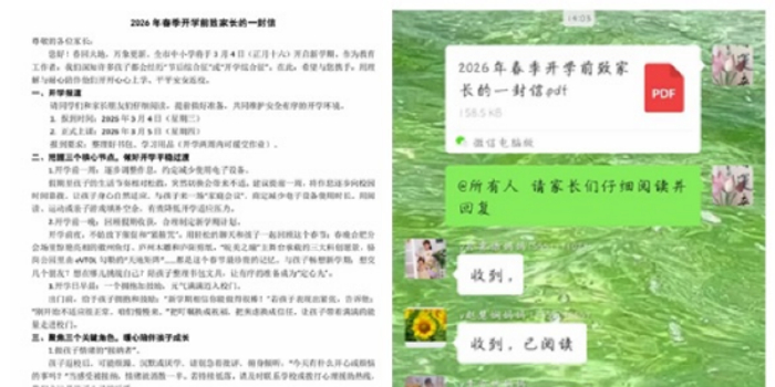 另外,学校还倡导家长做好三个角色:做孩子情绪的“接纳者”,耐心倾听孩子返校后的情绪变化;做开学收心的“引导者”,循序渐进制定计划,避免强行施压;做家校沟通的“合作者”,及时与老师沟通孩子在校状态,形成教育合力。