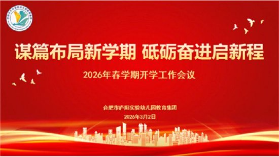 关注怀揣希望与憧憬,开启新学期新征程。为稳步推进园所各项工作有序开展, 2026年3月2日上午,合肥市庐阳实验幼儿园教育集团在四里河畔园以“谋篇布局新学期 砥砺奋进启新程 ”为主题召开2026年春季开学工作会议,全体教职工参会。