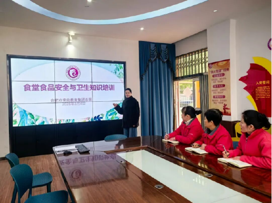关注“民以食为天,食以安为先”。食品卫生安全是幼儿园安全工作的重中之重。为切实筑牢校园食品安全防线,保障新学期全体师幼饮食健康与生命安全,合肥市荣城幼儿园教育集团总园于2026年3月4日下午,开展了食堂食品安全与卫生知识培训活动。