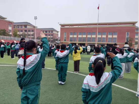 伴随着庄严的《义勇军进行曲》,鲜艳的五星红旗冉冉升起,全体师生肃立注目,齐唱国歌,现场庄重肃穆,爱国情怀在每个人心中激荡。
