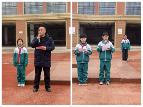 学生代表徐晨曦同学进行国旗下讲话。他代表全体学生表态,将在新学期里遵守校规、认真听讲、积极进取,以实际行动不负师长期望,努力成长为德智体美劳全面发展的好学生。