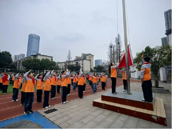 带着满满的能量,典礼在庄严的升旗仪式中正式拉开帷幕。伴随着激昂的出旗曲,全体师生肃立行礼,五星红旗在春日朝阳中冉冉升起,映照出孩子们朝气蓬勃的脸庞。
