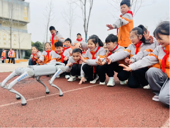 “太酷了!它会倒立!”“比真狗还聪明!”孩子们兴奋地议论着,眼中闪烁着对科技的好奇与向往。作为今年央视春晚合肥分会场科技元素的校园延续,机器狗的到来让同学们零距离感受到人工智能的飞速发展。合肥这座“创新高地”的科技基因,正深深融入孩子们的成长血脉。新学期,愿每一位学子以“智马”般的灵动与活力,驰骋在科技的广阔天地,用奇思妙想筑就未来的强国梦想。