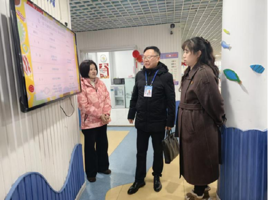 督查中,王金胜督学实地查看园所一键报警、视频监控等安全设施,深入食堂查看幼儿食谱公示及食品安全管理情况;走进班级观察幼儿入园情绪与师幼互动,细致核查教学计划、延时服务调研及“去小学化”落实情况,同时对“春启希望 苗绘未来”开学典礼等特色亮点工作给予关注。