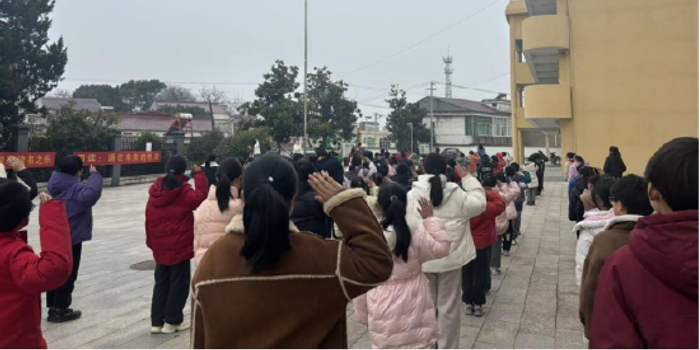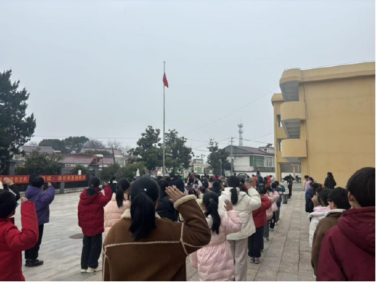 庐江县盛桥镇陡岗小学举行新学期第一次升旗仪式