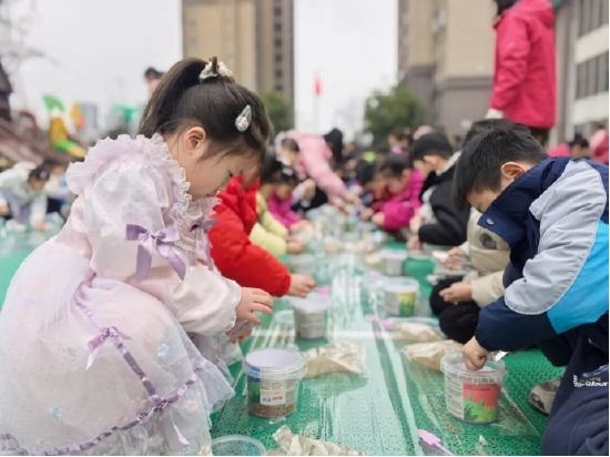 教师带来童话剧《小种子的春天魔法》,用生动表演传递成长力量。师生共同演绎手势舞《立春》,在灵动的手势与欢快的节奏中感受春日美好、感悟时节魅力。随后的集体播种环节,孩子们亲手播下种子,将对春天的期待与未来的憧憬一同种入土壤,在实践中感知生命、锤炼优良品格、强健健康体格。