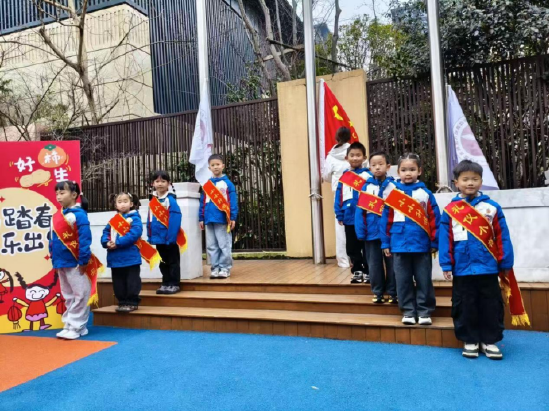 伴着春日的暖阳下,开学典礼正式拉开帷幕。主持人以“百戏入皖”文化为引,带领全体幼儿做简单的戏曲手势,瞬间点燃全场氛围。庄严的升旗仪式上,大四班的护旗手们迈着整齐的步伐护旗入场,雄壮的国歌声、悠扬的园歌在幼儿园回荡,孩子们行注目礼、齐唱园歌。随后,大四班的小朋友们精神饱满、声音响亮,向大家传递了新学期的美好祝福与蓬勃期许。紧接着,党支部副书记余璐上台致辞,她结合“百戏入皖”的文化契机,对孩子们新学期的成长寄予美好祝愿,鼓励大家争做戏曲小传人。此外她特别强调,新的学期幼儿园将继续深耕“四格教育”,让孩子们在传统文化的滋养下,成长为有根、有魂、有力量的新时代好儿童。