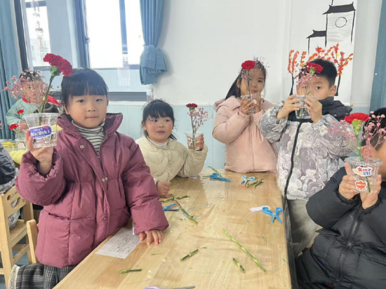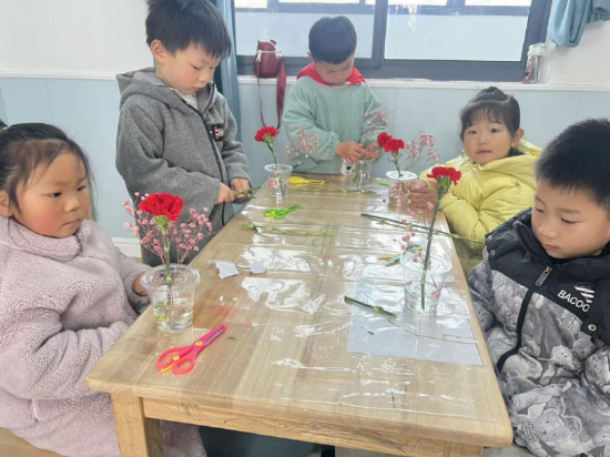 整个过程充满欢声笑语,孩子们专注认真,用稚嫩的小手完成了一份份充满爱意的礼物。每一束小花、每一个装饰,都承载着对妈妈和奶奶最纯真的爱与祝福。