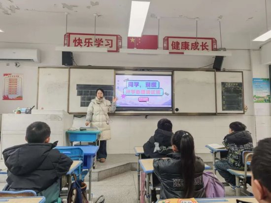 各年级各班班主任也结合本年级学生的年龄特点和心理需求,开展了形式多样的“开学适应”心理健康主题班会。班主任们以亲切的聊天方式,引导学生分享开学后的心情与困惑,有的同学诉说假期还没玩够,对开学充满抗拒;有的同学担心新学期学业难度增加,自己跟不上进度;还有的同学因重新适应集体生活而感到些许不安。针对这些问题,班主任们耐心倾听、温柔回应,既肯定了学生们真实的情绪表达,又结合班级实际,分享了简单易懂的情绪调节方法,比如写写心情日记、和同学朋友倾诉、做一些喜欢的运动等。同时,班主任们还带领学生一起制定新学期的小目标,拆解成一个个容易实现的小任务,让学生们在明确方向的同时,重拾面对新学期的信心与动力。