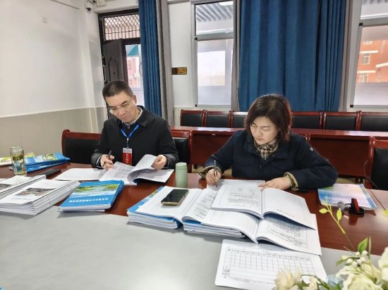 检查现场,检查人员逐本翻阅、细致审阅。从清晰的教学目标到精准的重难点突破,从灵动的教学环节到深刻的教学反思,每份教案都承载着教师们对课堂的敬畏与对学生的用心。检查组认真点评、悉心指导,在翻阅中交流,在点评中提升,让常规检查成为一场温暖的教育修行。