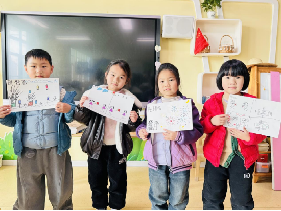 大班幼儿以“寒假趣事画一画、讲一讲”为主题,开启创意表达与语言展示活动。孩子们自主回忆假期游玩、拜年、学新本领、体验传统习俗等美好瞬间,用画笔描绘精彩生活,并为作品取名。在讲述环节,孩子们自信登台,结合画作与照片分享寒假故事,表达清晰、落落大方;同伴们认真倾听、文明互动,展现了良好的礼仪与学习品质。
