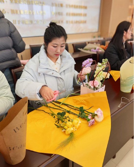 平日里深耕讲台、默默耕耘的老师们,暂时放下忙碌的教学工作,化身巧手花艺师,沉浸式投入创作之中。大家围坐在一起,剪枝、修叶、搭配、塑形,相互交流探讨,分享创作灵感,在指尖的灵动操作中,将原本零散的花材,打造成一束束错落有致、独具匠心的花艺作品。现场欢声笑语不断,每一张脸庞都洋溢着幸福的笑容,定格下属于教育工作者的温柔与明媚。