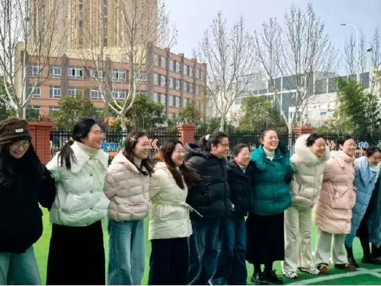 活动伊始,老师们在欢快的音乐中开启了第一个游戏——兔子舞。大家放下拘谨,跟着节奏迈开脚步,在简单的律动中释放压力,放松身心。轻松的舞步让现场气氛迅速升温,每个人脸上都洋溢着久违的笑容。