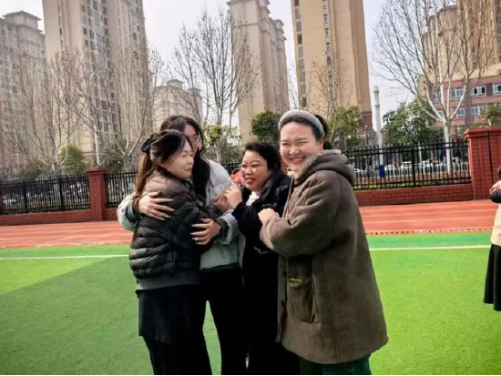 温暖的信任之后,“桃花朵朵开”游戏让快乐持续升温。老师们积极参与,主动拥抱身边的伙伴,在欢声笑语中拉近距离,增进情谊。现场充满了温暖与友爱的氛围,每个人都在互动中感受到集体的力量。